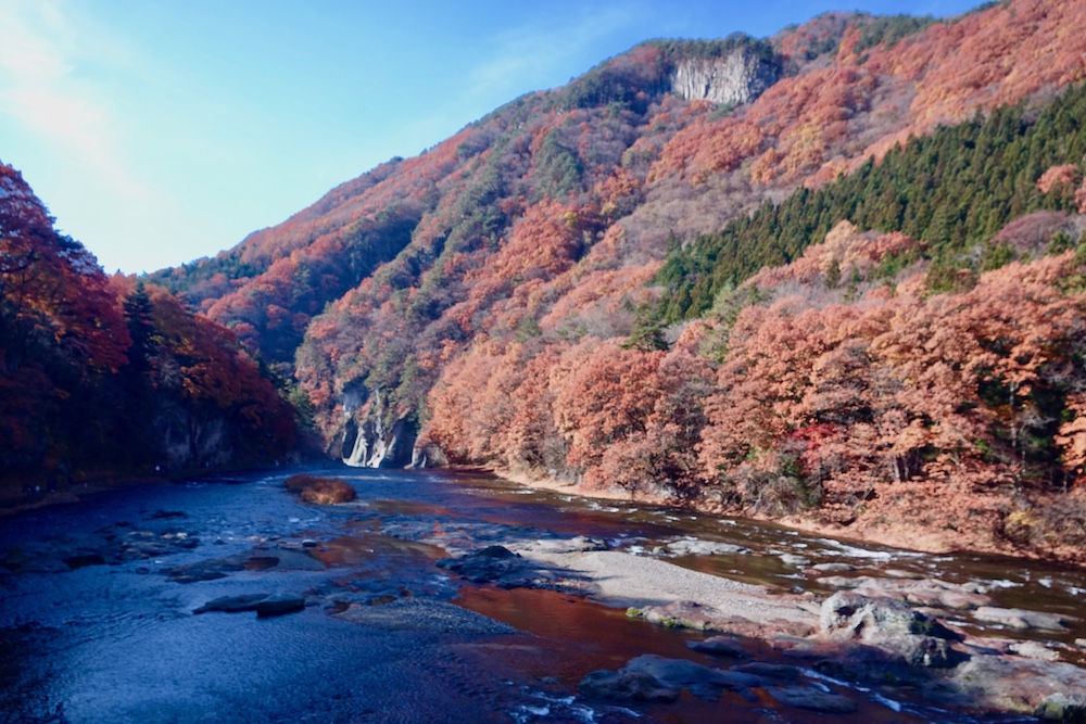 そこからバスで1時間 吹割りの滝で下車 計4時間かけて吹割り渓谷へ