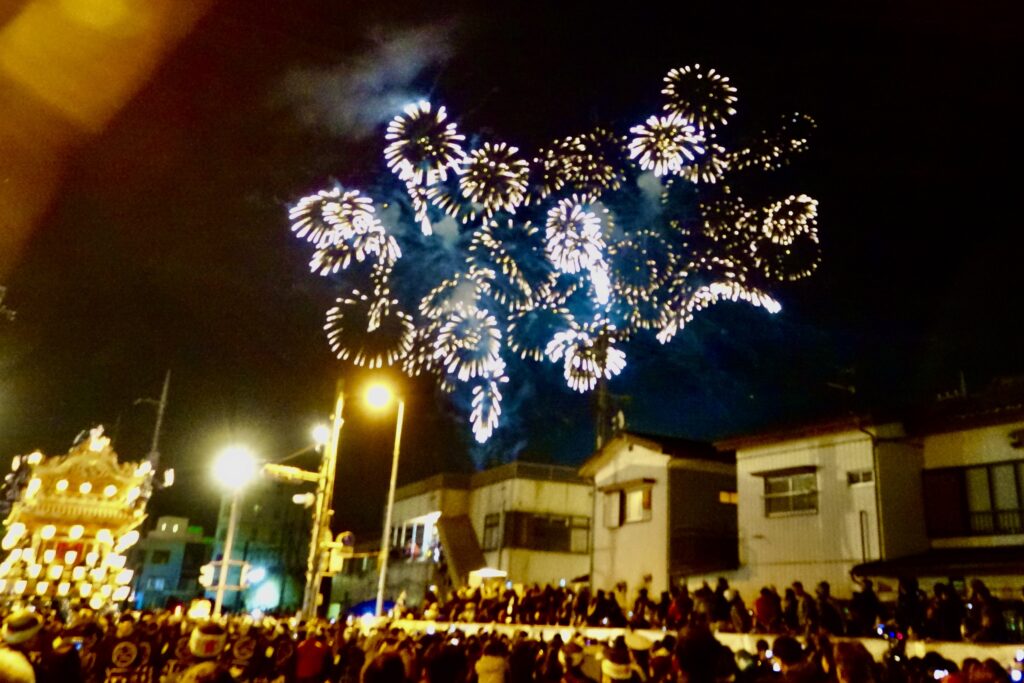 この祭りの見所は花火と屋台のコラボ