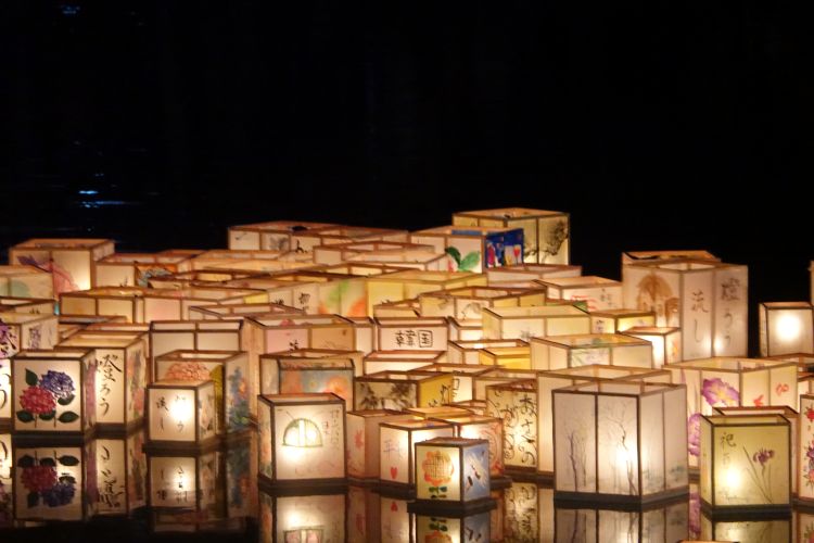 6月1日 加賀百万石祭りの前夜祭 加賀友禅灯篭流しを観に金沢へ 観覧場所は浅野川の両岸 女川と言われるほど流れは穏やかで 灯篭は天神橋の上流側で滞ることが多い、 右岸側から観るのがお薦め -