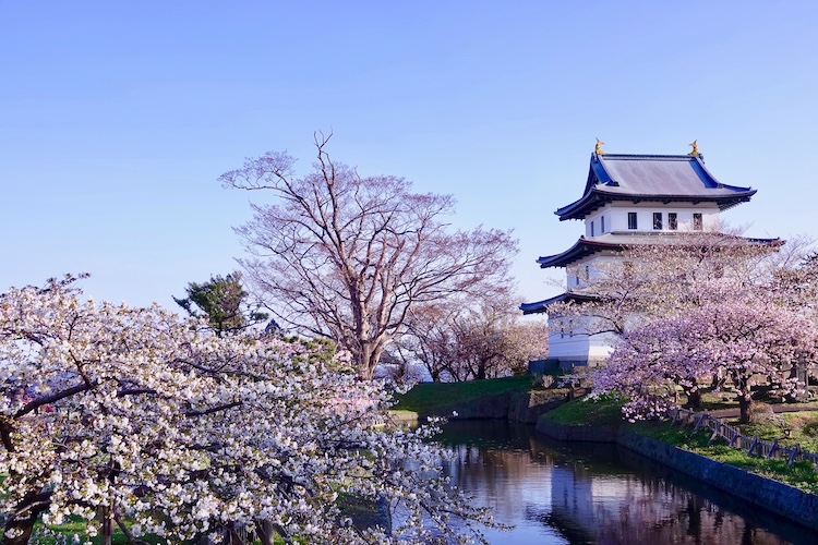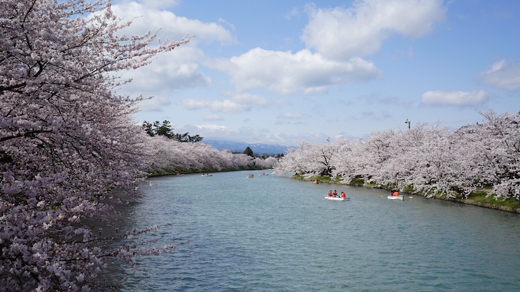 4月23日(土)東北三大桜の名所 青森の弘前公園 現存12天守の弘前城天守 天守前広場の桜 お堀の桜 散ってからの 花筏も見応えがあります。